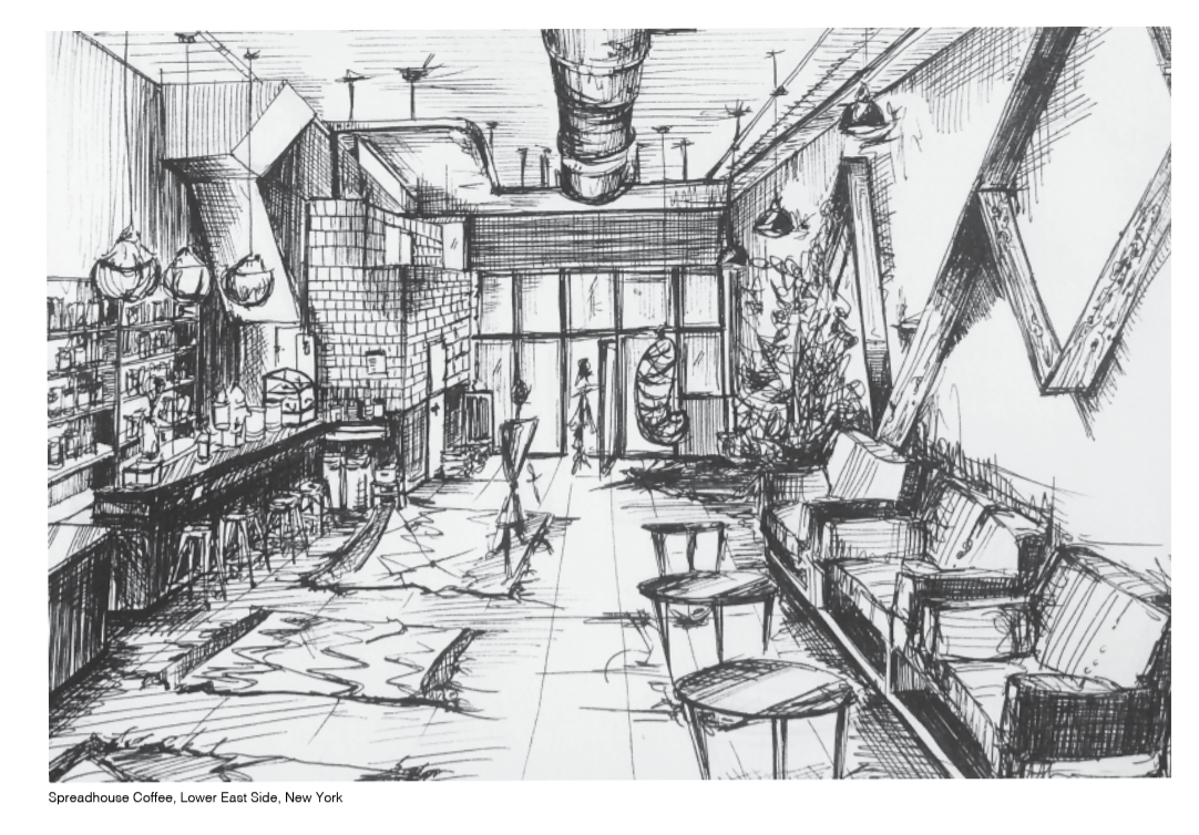 In the design development phase, an array of sketches can be used to visualize initial design concepts for hospitality and residential spaces. These sketches serve as a valuable tool to convey ideas and communicate the intended experience to the client. Unlike flat surface renderings, hand-sketching can often capture a more personal and emotional aspect of the design.