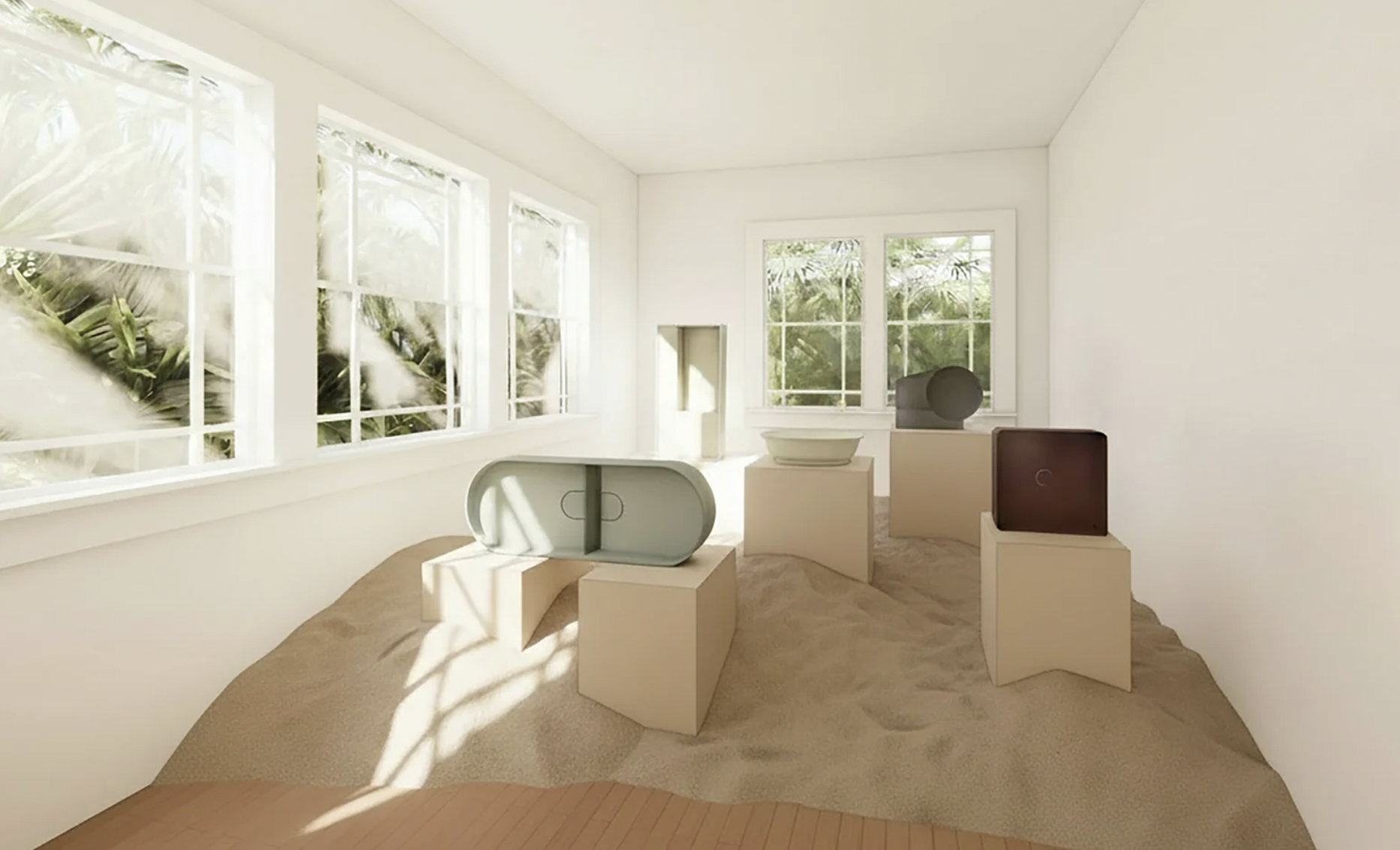 “I chose sand as the medium to ground Colour Archaeology — a project on colour by LAUFEN and Roberto Sironi — in its truest context for Alcova Miami 2025: the earth that first held the pigments of ancient ceramics, and a material that echoes kaolin, the mineral foundation of vitreous china. In dialogue with Miami’s luminous landscape, the installation transforms Sironi’s research into a tactile, temporary study of layers, digging deeper, time, origin, and presence.